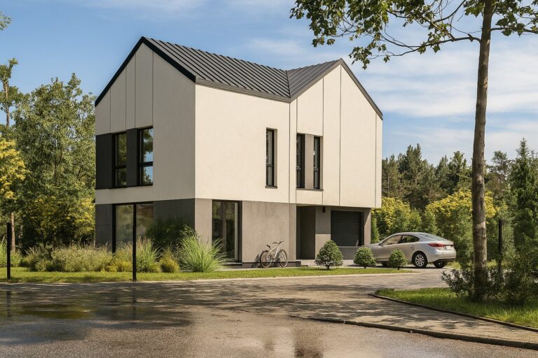 Budynek przy ul. Leśnej 24J w Łajskach to większy wariant domu jednorodzinnego, oferujący jeszcze więcej przestrzeni i swobody aranżacyjnej. Zaprojektowany z myślą o rodzinach poszukujących komfortu, przestrzeni oraz funkcjonalnych rozwiązań.